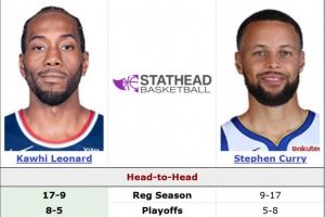 據(jù)統(tǒng)計(jì),倫納德常規(guī)賽對(duì)陣庫(kù)里17勝9負(fù),季后賽8勝5負(fù)。