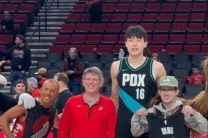 賽后,作為球隊(duì)常規(guī)賽收官戰(zhàn)的保留節(jié)目,開(kāi)拓者球員為部分季票球迷送上簽名球衣,楊瀚森把自己的球衣送給了一位從1971年就開(kāi)始支持球隊(duì)的老球迷。