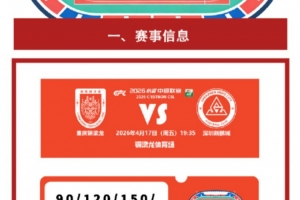 體育資訊4月13日訊 重慶銅梁龍發(fā)布中超第6輪對陣深圳新鵬城票務(wù)信息,本場門票售價90元-300元。