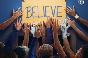 海報(bào)中,“Believe”(相信)一詞格外醒目,巴薩官推還配文“相信方能感受活著”,這句話引用了美國(guó)喜劇《足球教練》中的臺(tái)詞。