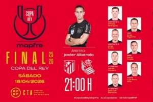 體育資訊4月13日訊 北京時間4月19日凌晨3:00,西班牙國王杯決賽,馬競將對陣皇家社會。西班牙足協(xié)官方今日公布了本場比賽的裁判組,哈維爾·阿韋洛亞執(zhí)法。