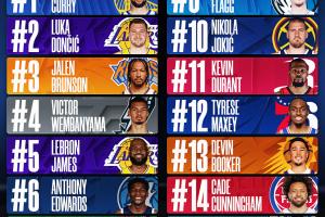 NBA官方曬2025-26賽季球衣銷量TOP15的球星,具體如下: