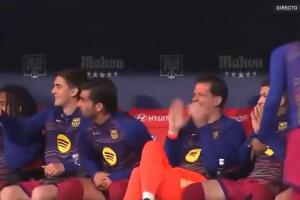 轉(zhuǎn)播方Movistar+的鏡頭捕捉到,當(dāng)巴薩替補(bǔ)席看到岡薩雷斯這樣的舉動(dòng)后都大笑起來,加維向眾人模仿了他的動(dòng)作,替補(bǔ)門將什琴斯尼更是翹著二郎腿看球,鼓掌大笑。