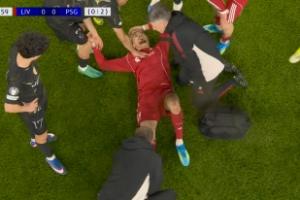 體育資訊04月15日訊 歐冠8強(qiáng)次回合利物浦vs巴黎,?;倏说?9分鐘無(wú)對(duì)抗受傷,被擔(dān)架抬出場(chǎng)。薩拉赫登場(chǎng)!